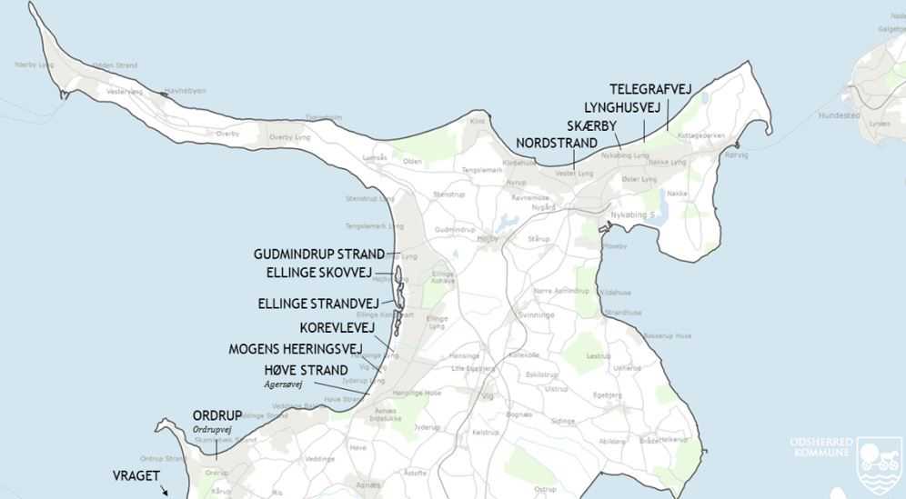 Kort over strande hvor vi rydder ålegræs