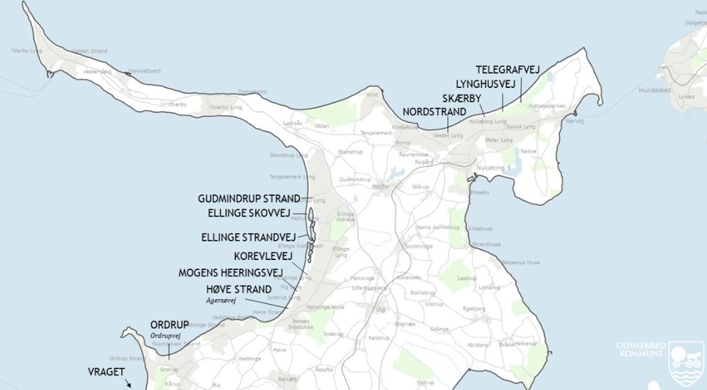 Kort over strande hvor vi rydder ålegræs