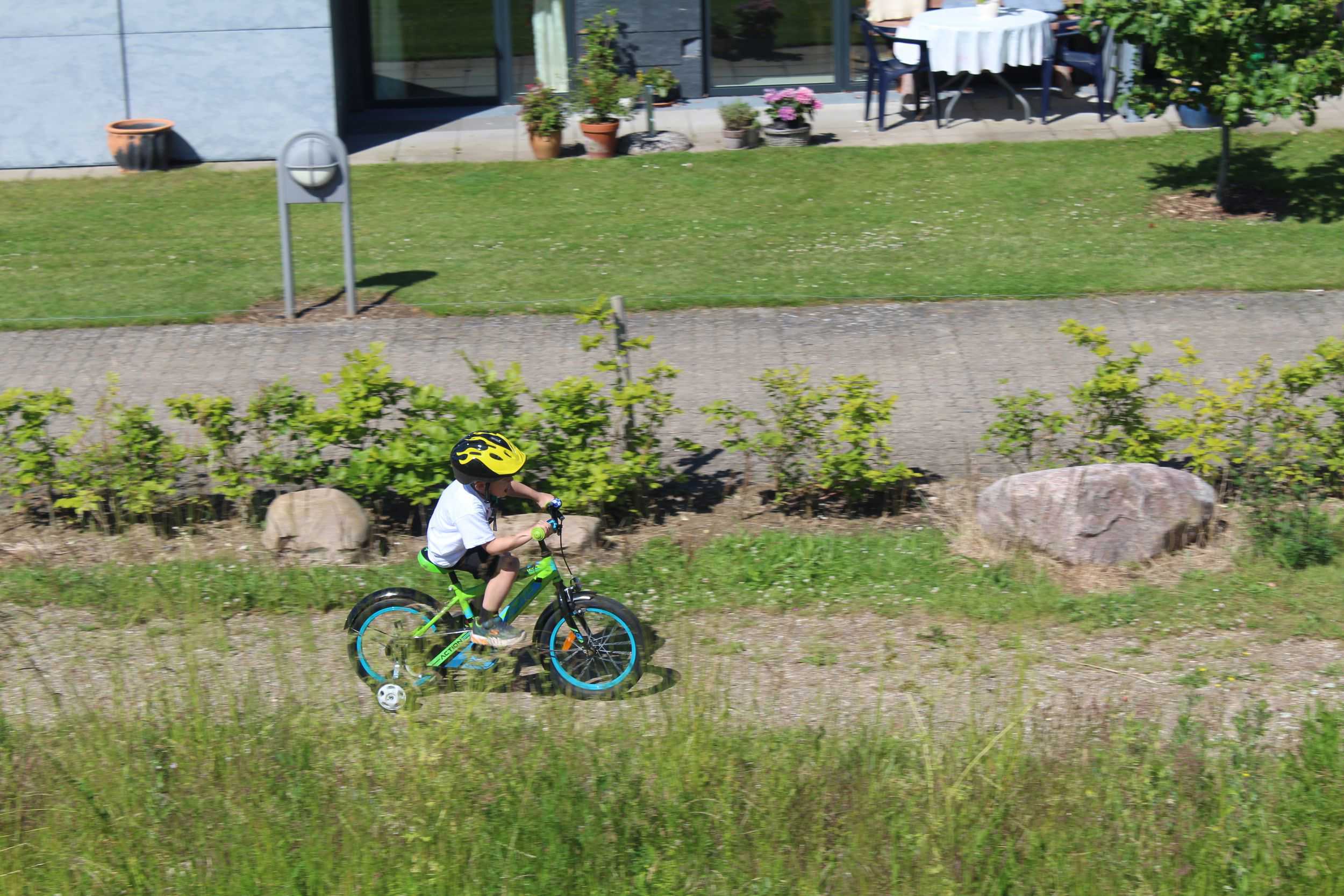 Og alle børnene var glade og engageret i cykellegene og den frie cykling, og de klarede også de små bjergetaper oppe på Geoparkcykelbanen, så hvem ved om ikke en kommende cykelrytter en dag dukker frem her.