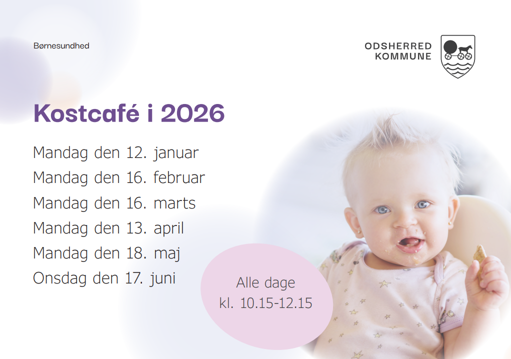 I kostcaféen kan I som familie med børn mellem 3,5 og 7 måneder, få mere viden om opstart af mad og barnets sansemotoriske spiseudvikling. Efterfølgende er der mulighed for at få råd og vejledning fra både børneergoterapeut og sundhedsplejersker. Vi mødes i Kulturladen, Præstegårds Allé 2C, 4571 Grevinge - se datoerne herunder.
