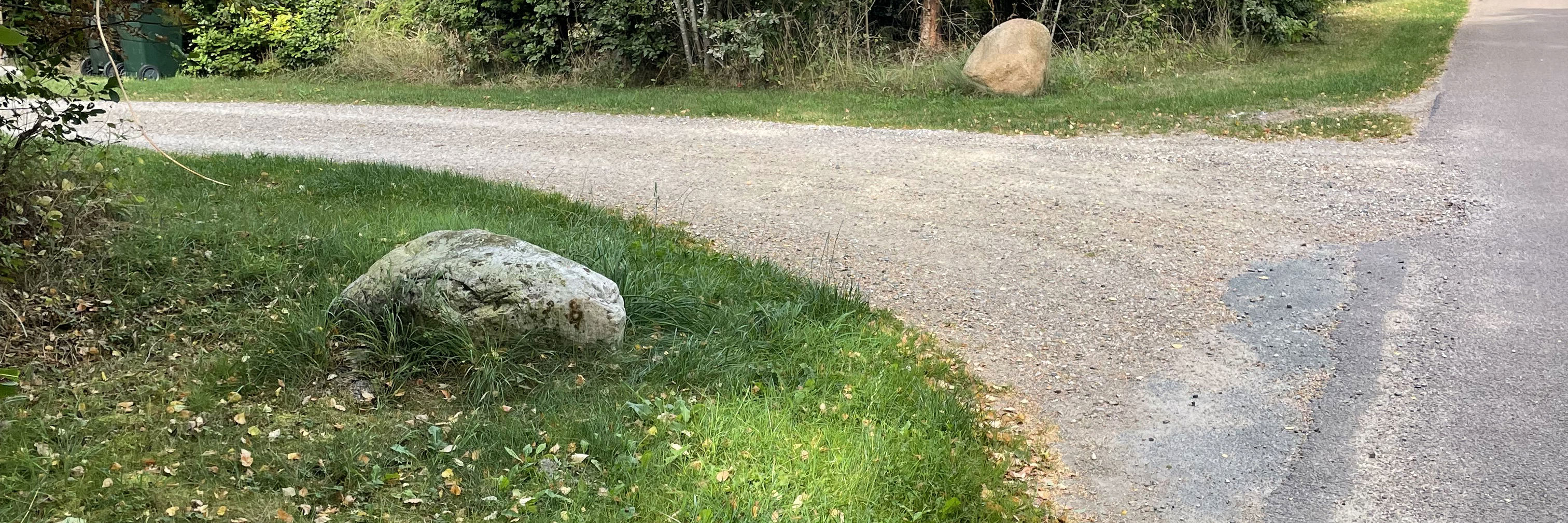 Sten i vejrabatten er kun tilladt, hvis vi giver en tilladelse, og kun i ganske særlige tilfælde, fx hvis der er tale om en mindesten.