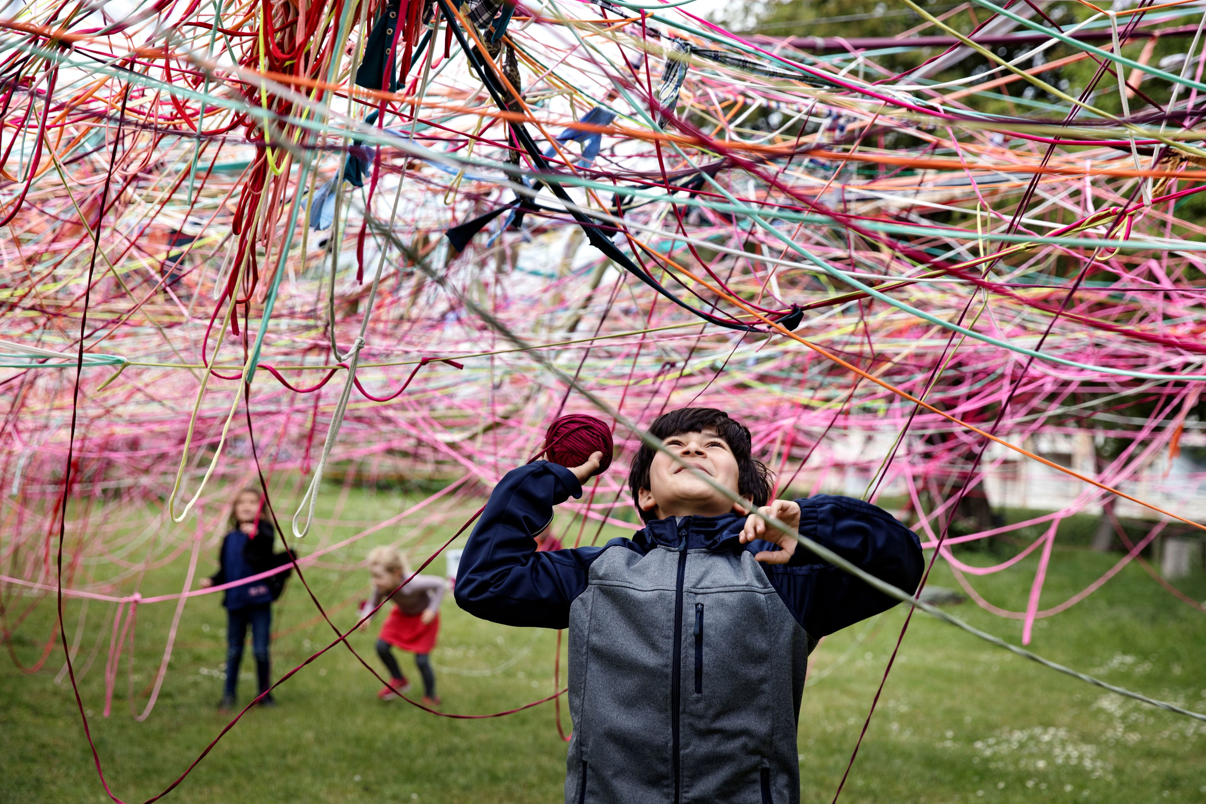 Installationen ændrer sig løbende i takt med deltagernes bidrag – og påvirkes også af vejr, vind og tiden på dagen. Resultatet er et levende og sanseligt billede på fællesskab, bevægelse og de mange forskellige temperamenter, der mødes i byen.