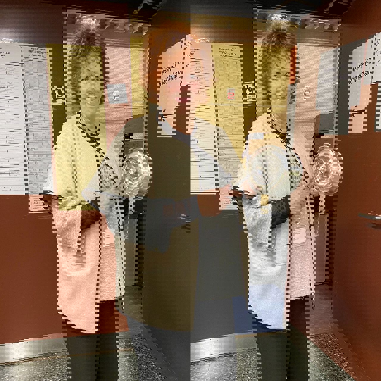 Kort efter kom kommunaldirektør Claus Steen Madsen og borgmester Karina Vincentz også forbi hallen i Herrestrup. Ikke for at stemme, men for at hilse på valgholdet som tager sig af alt det praktiske arbejde med at tage imod og registrere de vælgere, som kommer ind for at sætte deres krydser.