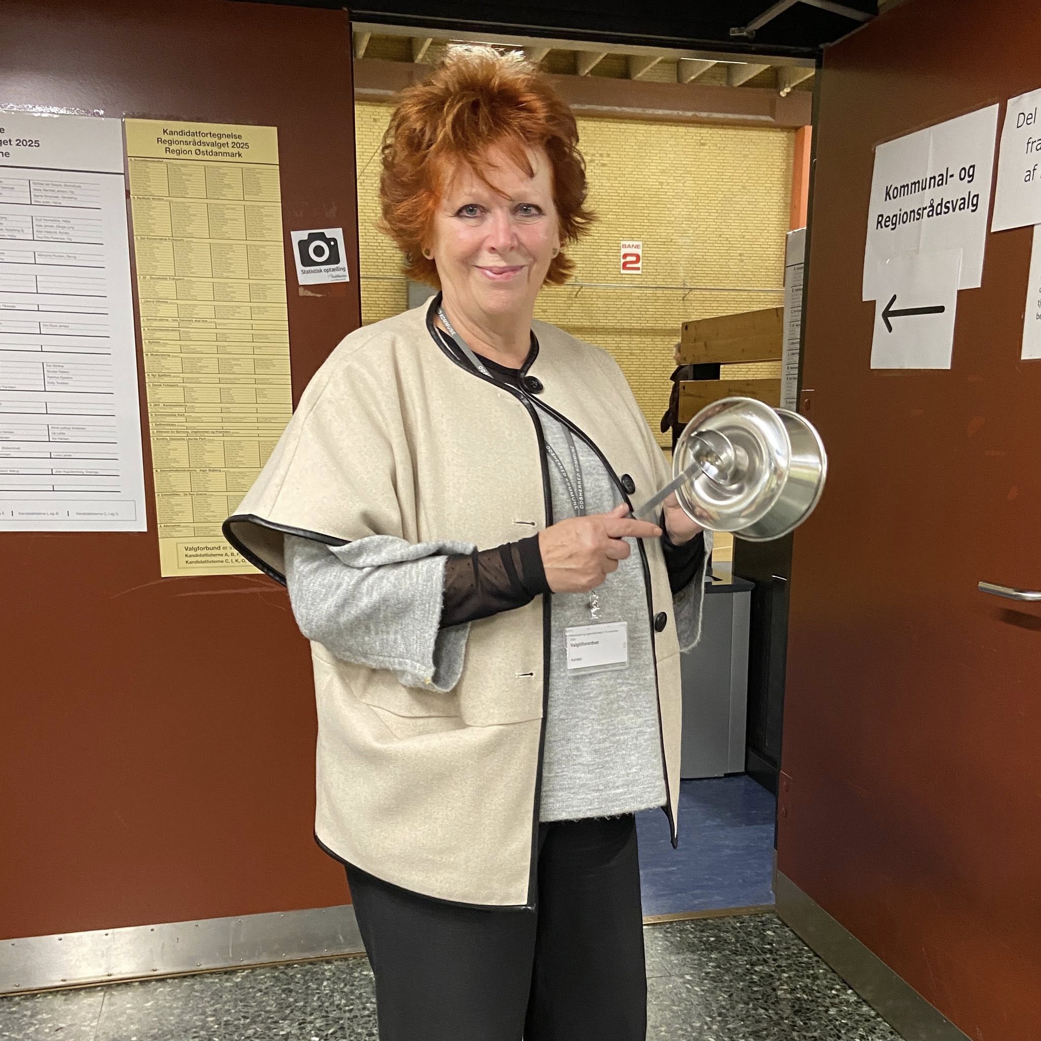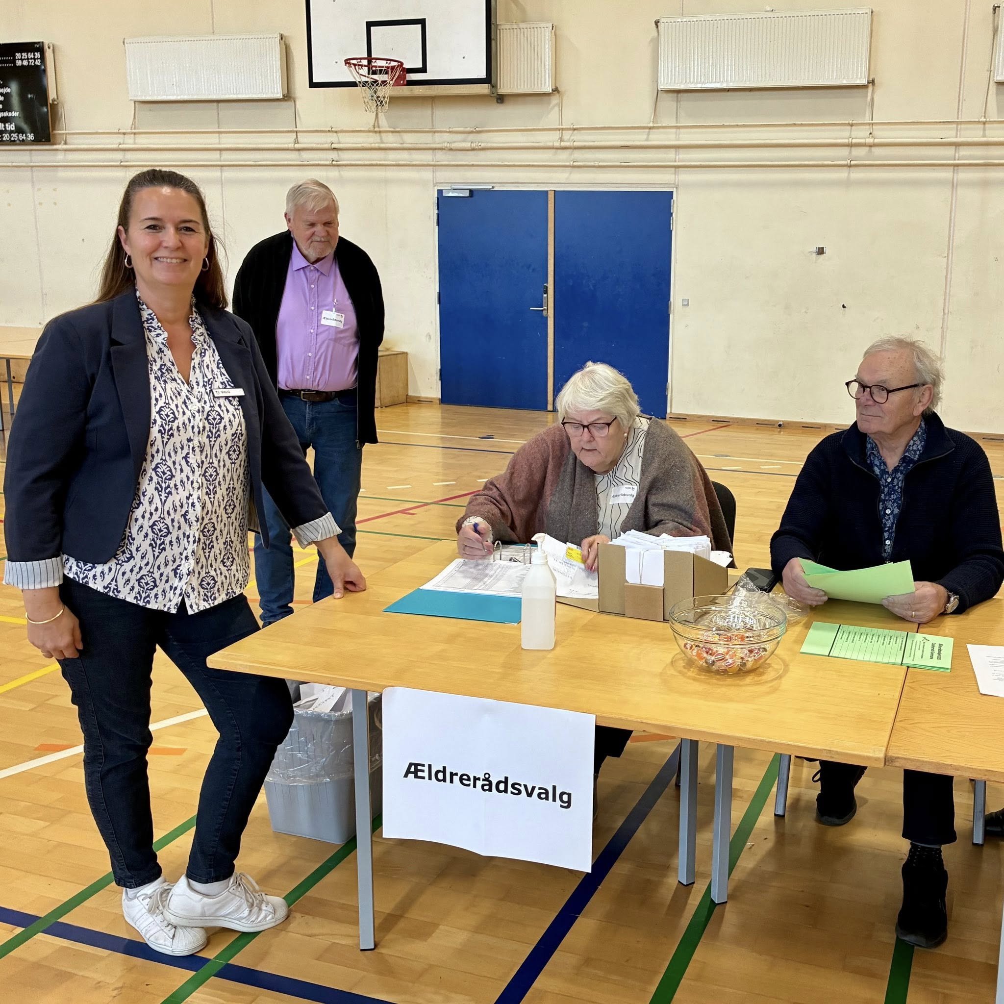 Kort efter kom kommunaldirektør Claus Steen Madsen og borgmester Karina Vincentz også forbi hallen i Herrestrup. Ikke for at stemme, men for at hilse på valgholdet som tager sig af alt det praktiske arbejde med at tage imod og registrere de vælgere, som kommer ind for at sætte deres krydser.