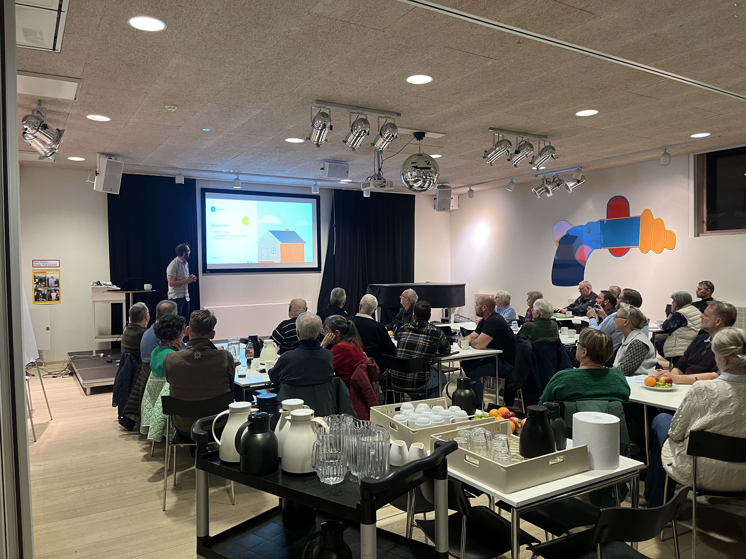 På mødet fortalte en rådgiver fra Energistyrelsens rådgivningstjeneste SparEnergi blandt andet om, hvordan varmepumper fungerer i praksis. I oplægget kom han også ind på støjniveau, forskellige typer af anlæg og mulighederne for at søge tilskud fra den statslige varmepumpepulje.